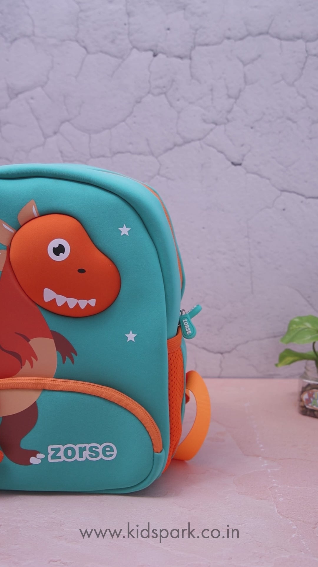 ZORSE Dino Premium Quality 3D dual zip Backpack for kindergarten kids small size (orange)